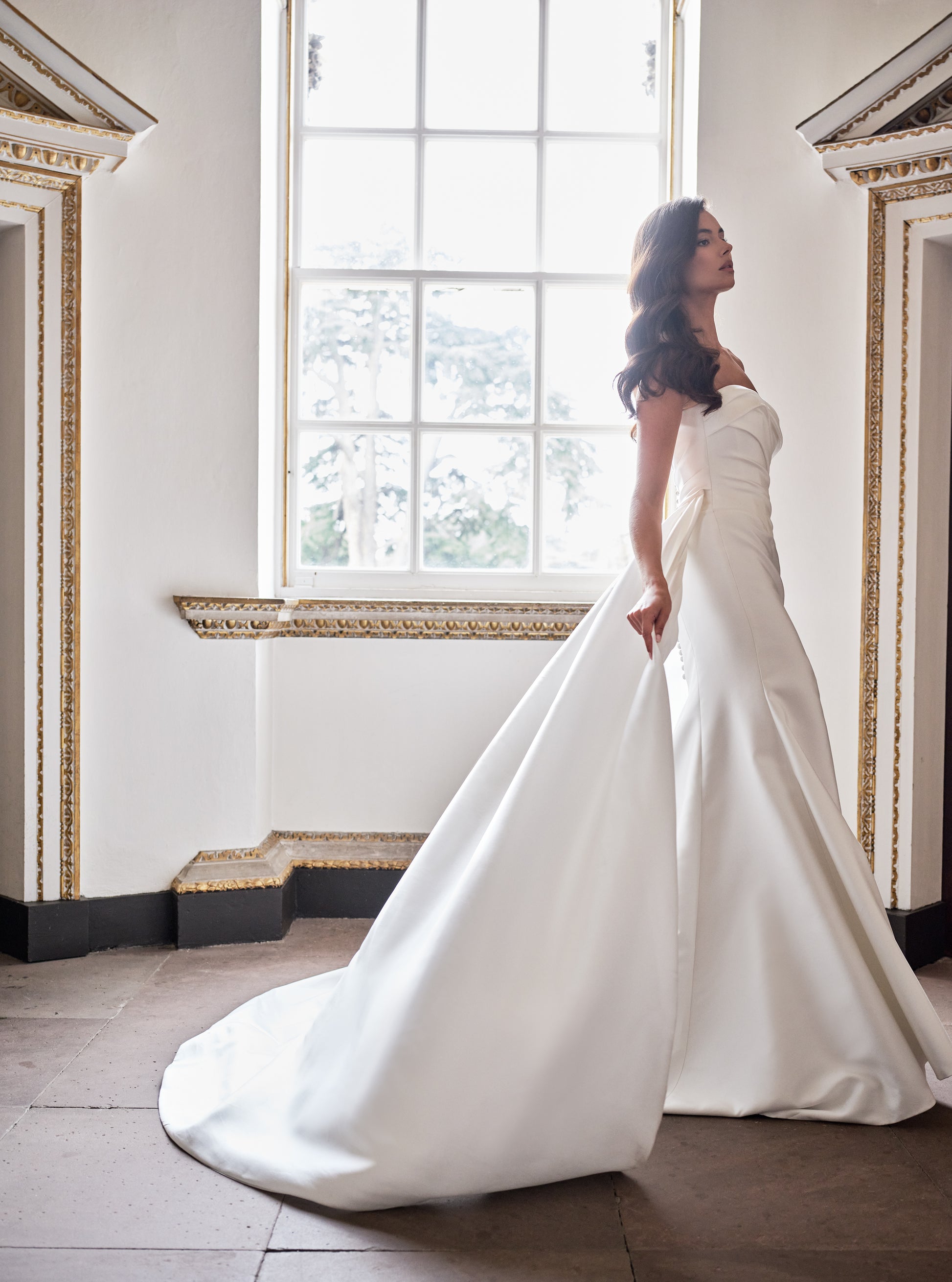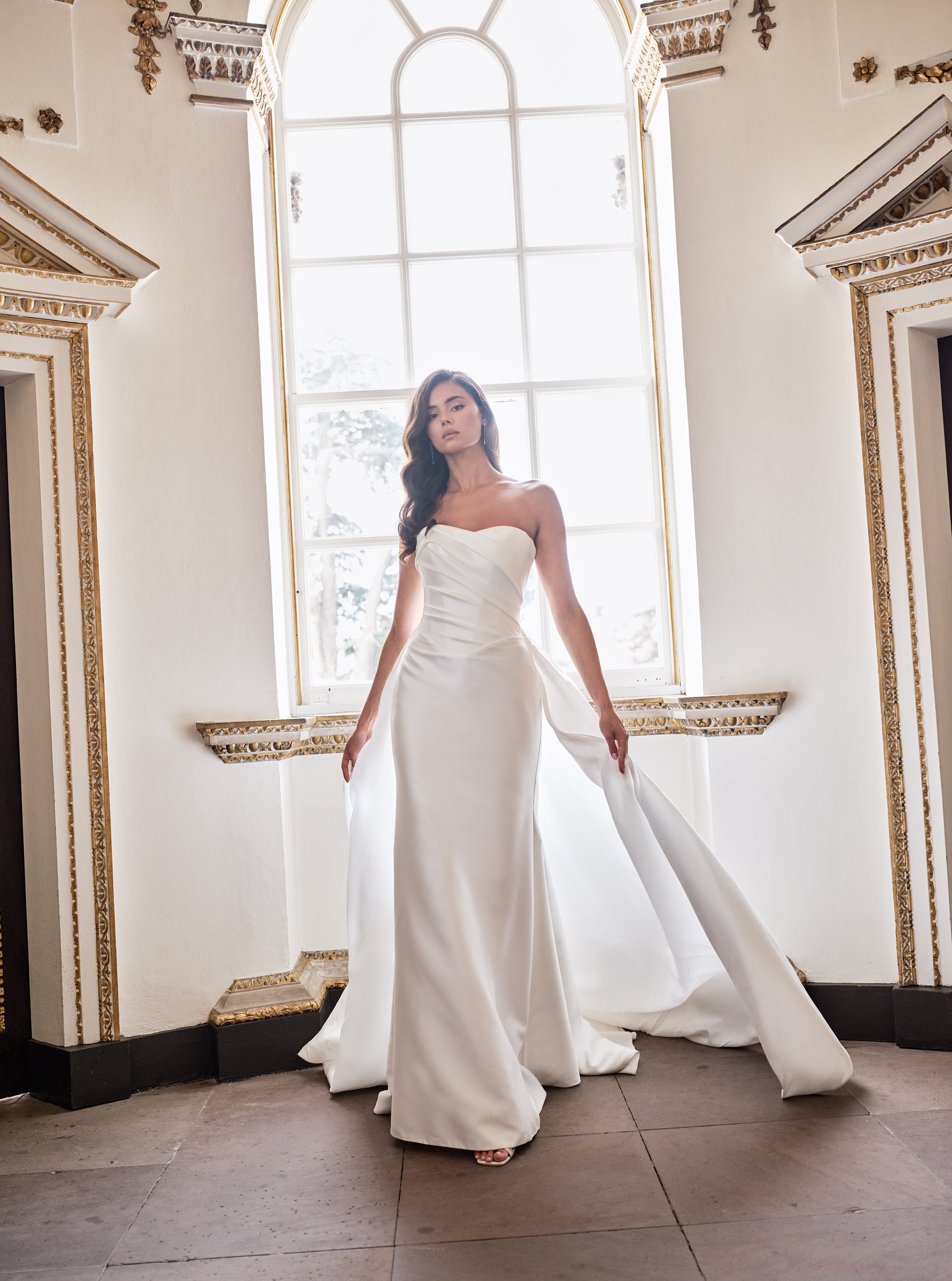 Detailing and Finish: The Arielle dress & train offers two totally unique looks – can be worn together for extra drama as you walk down the aisle and exchange vows, and later the dress can be worn on its own for ease of movement as you dance the night away at your reception, but still leaving your guests exclaiming ‘wow!’