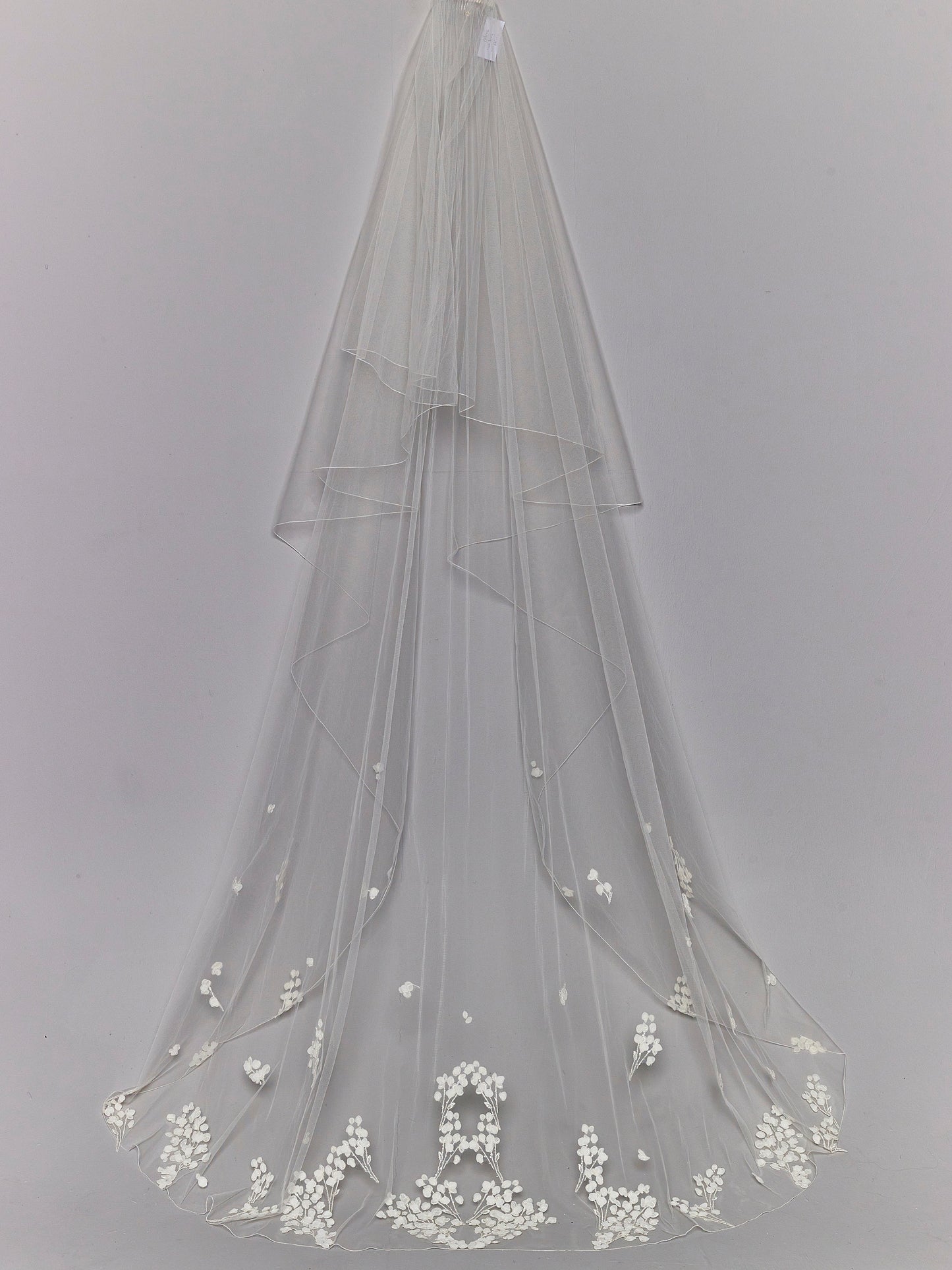 Pictured: model is wearing a two-tier Petal Applique veil in an Extra Long length (110"). Bespoke lengths also available.
