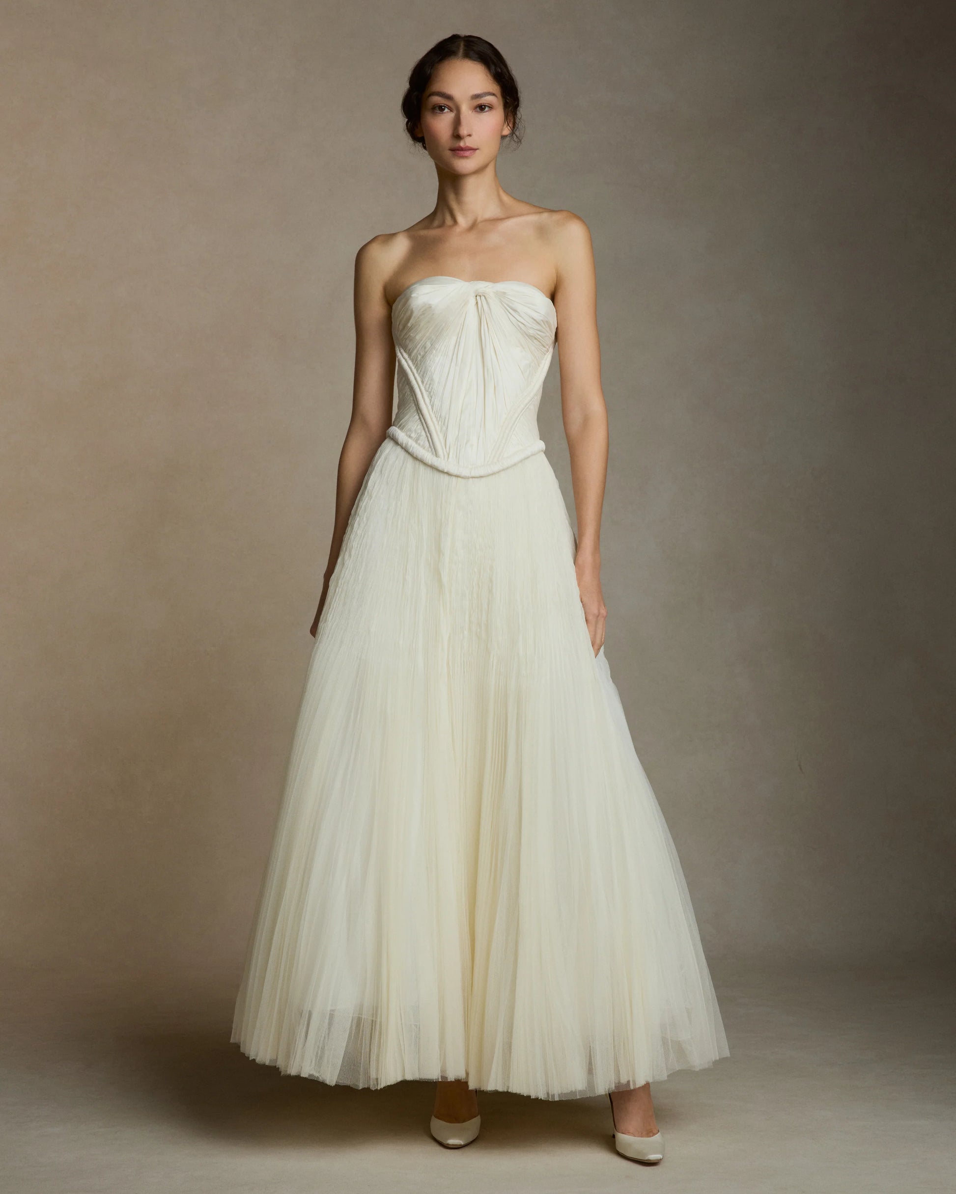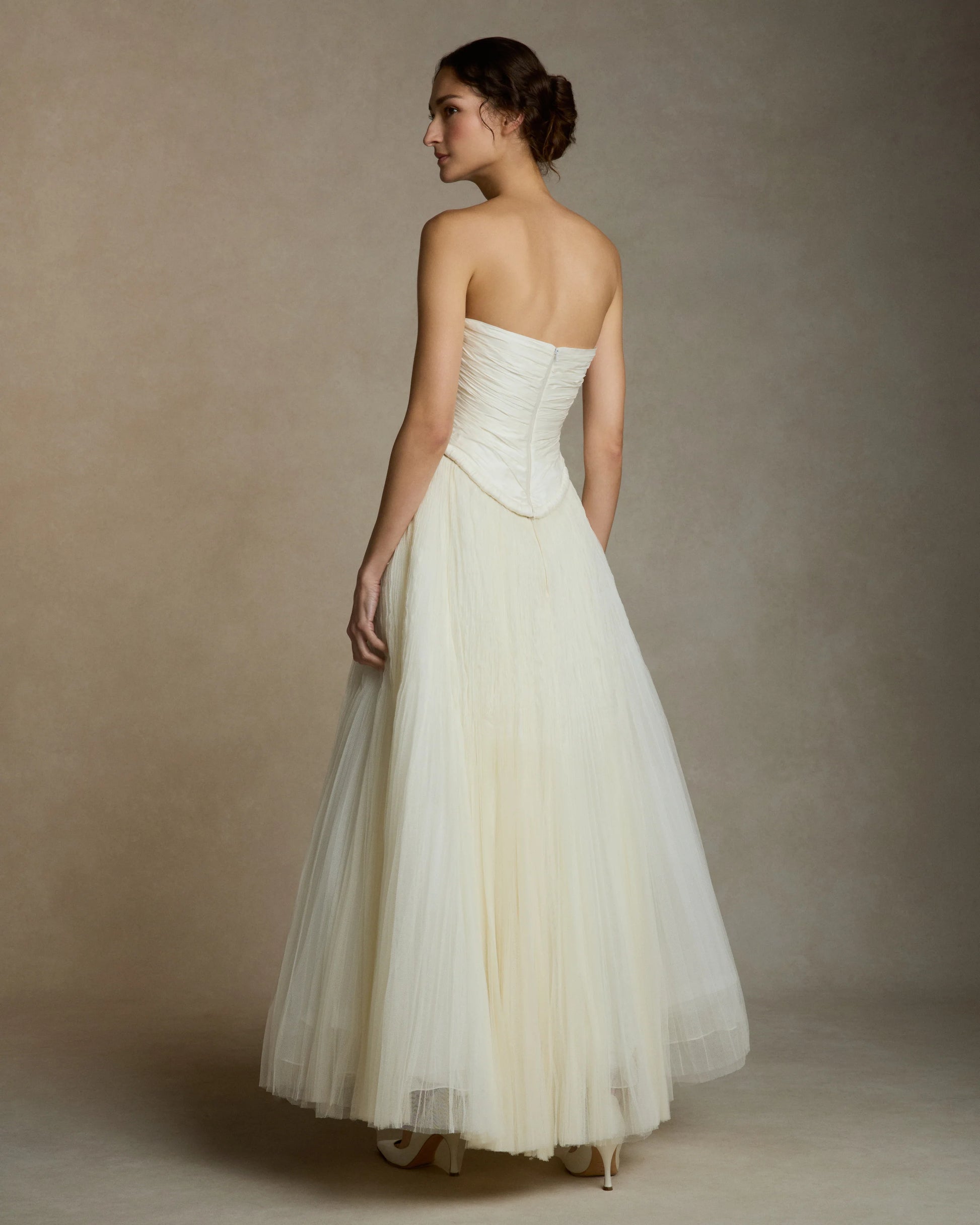 Detailing and Finish: Finished with intricate hand pleated details for a unique textured effect and a classic invisible zip closure in the centre back. Styled here with the Georgia Skirt, also available to try on at Rachel Scott Couture!