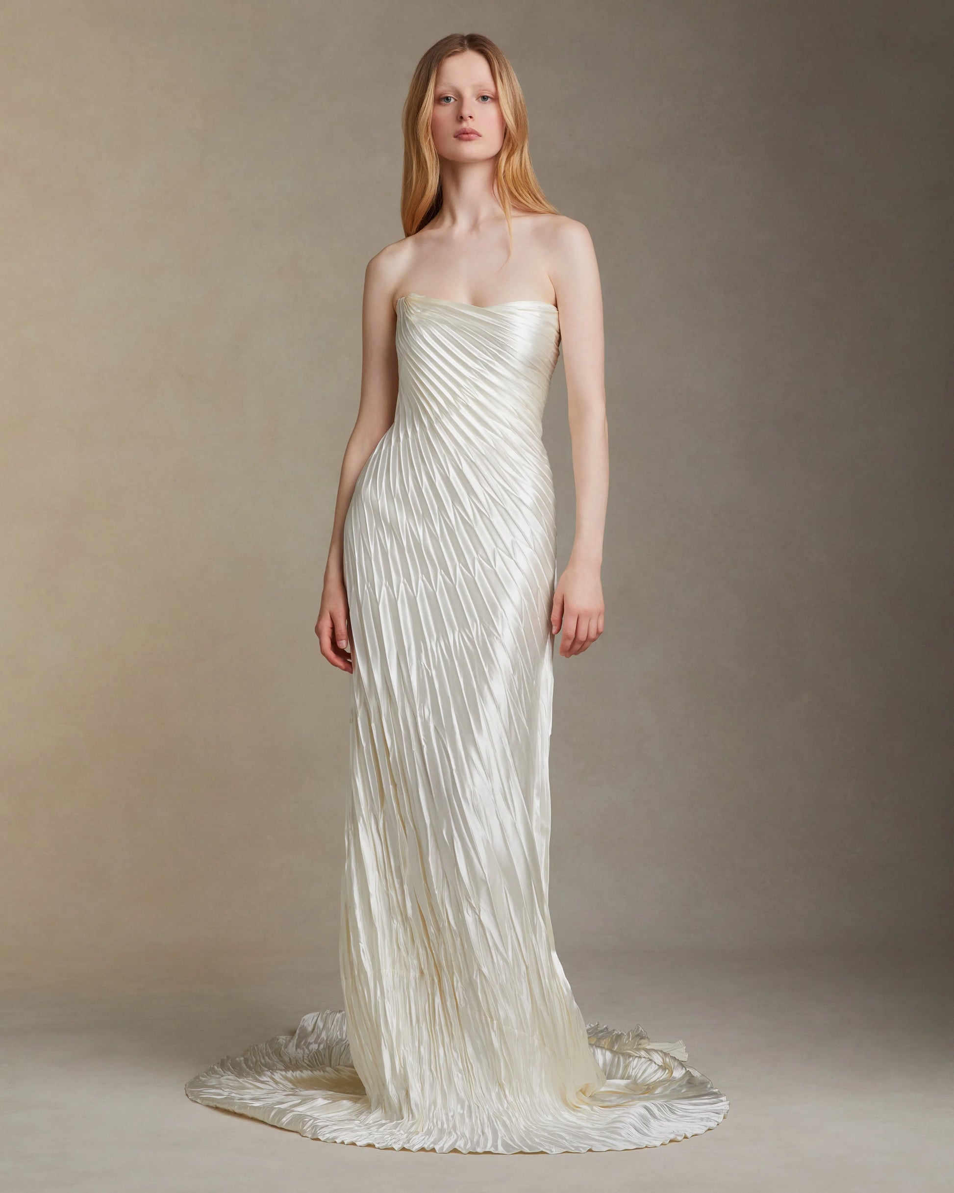 Detailing and Finish: Strategically pleated and hand crinkled fabric with fluid draping twists around the body mimicking water.