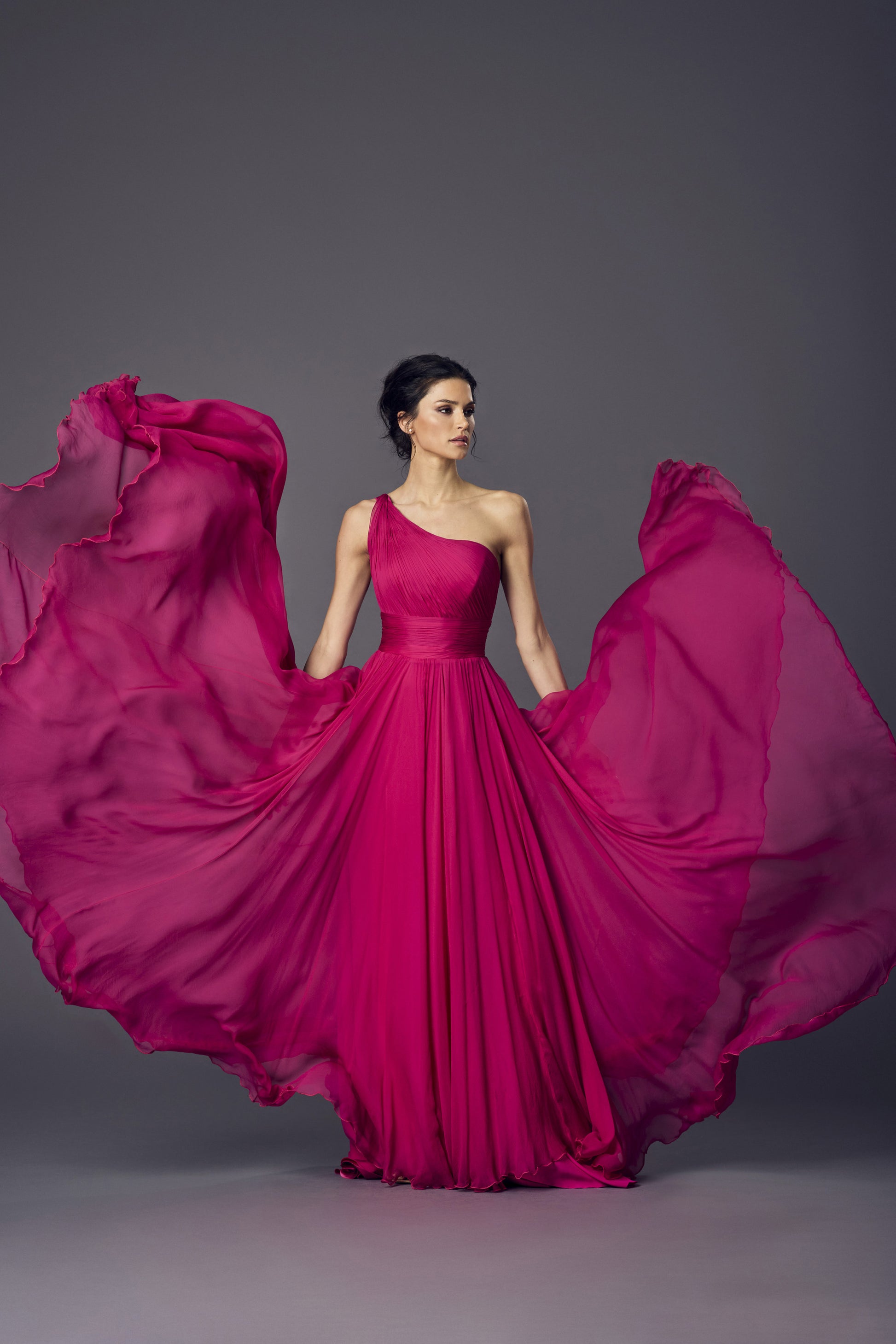 Detailing and Finish: As worn by Tess Daly herself! The soft silk chiffon fabric gives the dress a light and floaty feel, perfect for summer events. The dress includes intricate gathering details across the shoulder and bodice that draws the eye in. Although our sample is in a vibrant fuchsia colour, bespoke customisations are available!