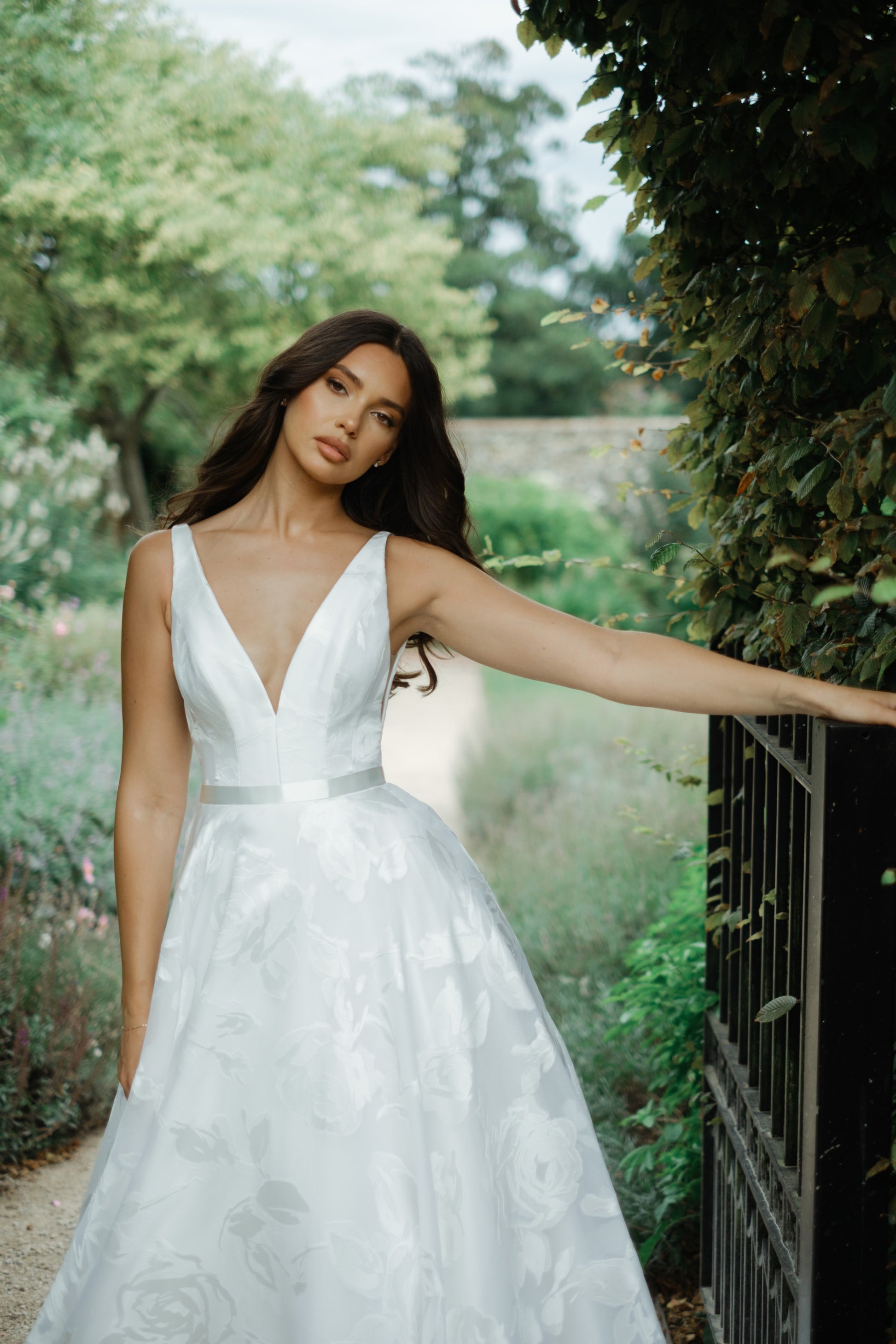 Detailing and Finish: The Willow dress features subtle floral prints throughout the fabric. Finished with a line of classic bridal buttons down the centre back and a contrasting belt.